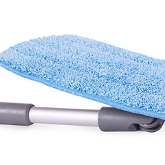NANO SLICED. Особое строение микроволокна позволяет отказаться от вредной бытовой химии и использовать для уборки только воду. Уникальная конструкция изделия распределяет давление на всю платформу. В результате в процессе уборки одинаково эффективно «работает» вся площадь насадки. Шарнир в месте крепления платформы швабры к рукоятке позволяет наклонять швабру под любым углом к полу. Телескопическая ручка выдвигается от 80 до 150 сантиметров, а прямоугольная подвижная платформа позволяет быстро мыть пол, не двигая мебель.