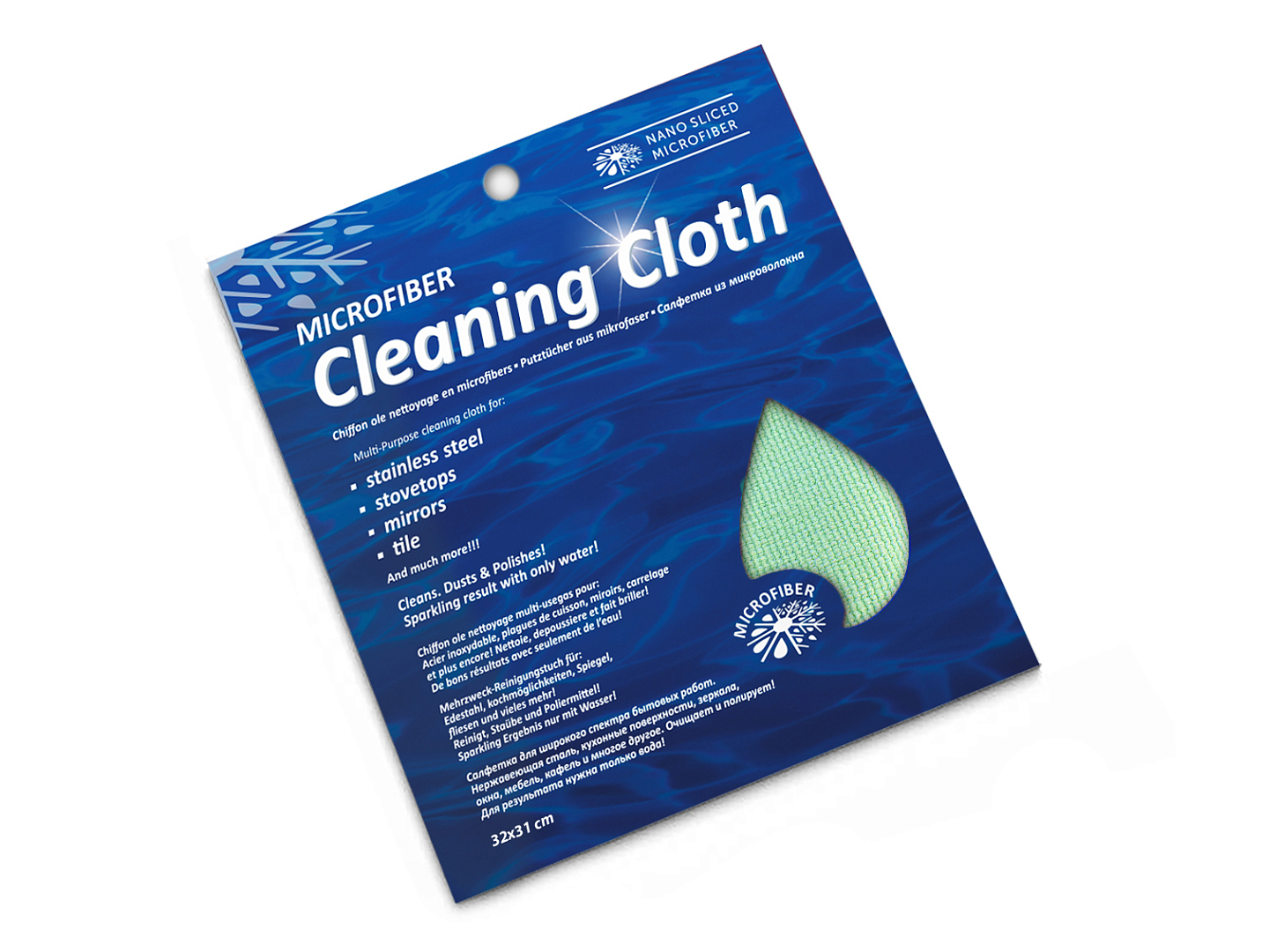 Салфетка от известного швейцарского производителя выполнена из инновационной разработки бренда. Это микроволокно IV поколения, которое позволяет устранить все недостатки изделий такого типа: